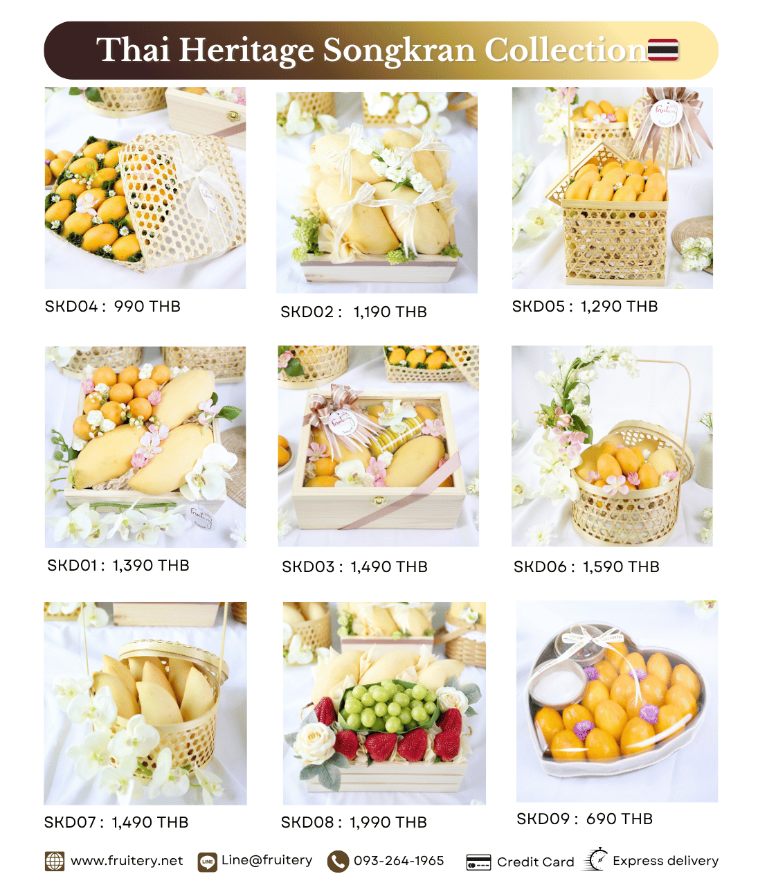 Fruit & Flower Gift Box (Size S) Floral & Botanical Theme กล่องของขวัญผลไม้นอกรวม ตกแต่งด้วยดอกไม้ผ้าพรีเมี่ยม (กล่องสีแดง/เงิน/ทอง)