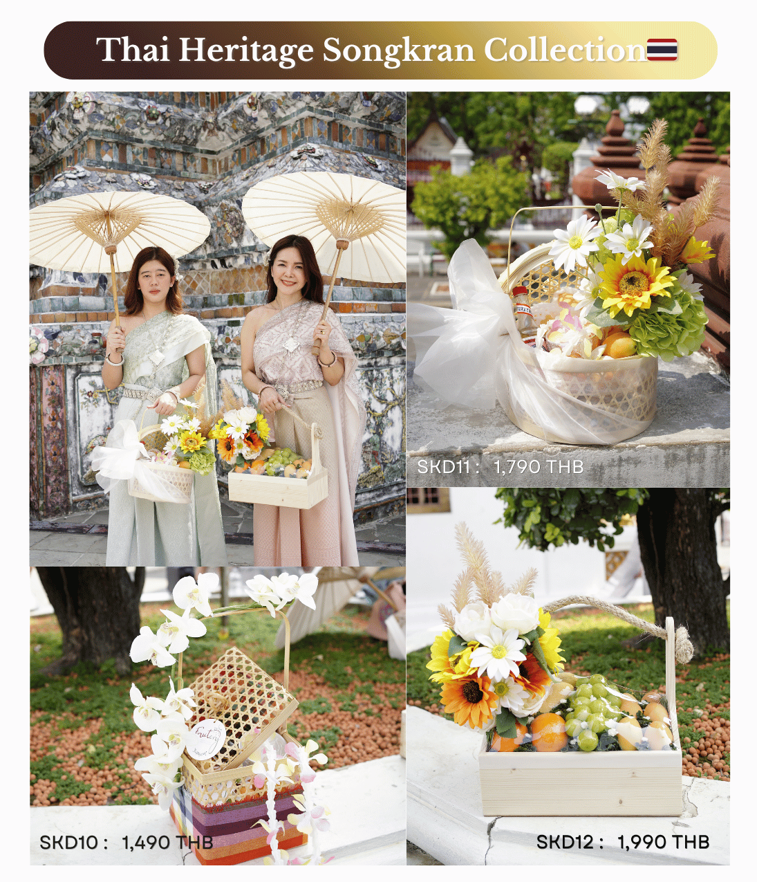 Fruit & Flower Gift Box (Size S) Floral & Botanical Theme กล่องของขวัญผลไม้นอกรวม ตกแต่งด้วยดอกไม้สด (กล่องสีแดง/เงิน/ทอง)