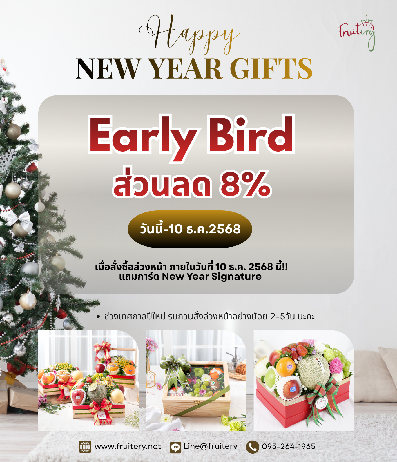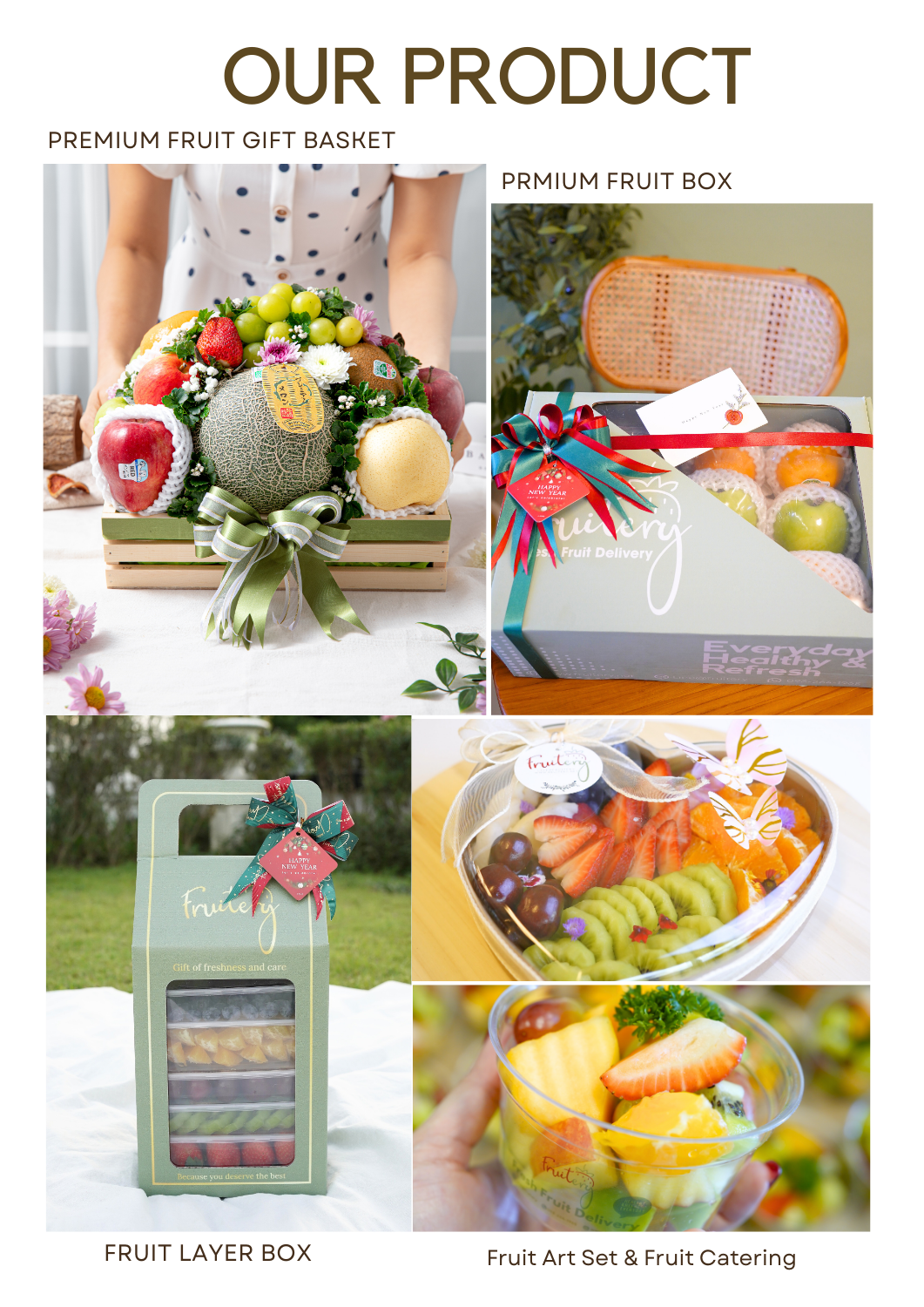 Triple Fruit Gift Box (Size S) Floral & Botanical Theme กล่องของขวัญผลไม้นอกรวม ตกแต่งด้วยดอกไม้สด (กล่องสีแดง/เงิน/ทอง)