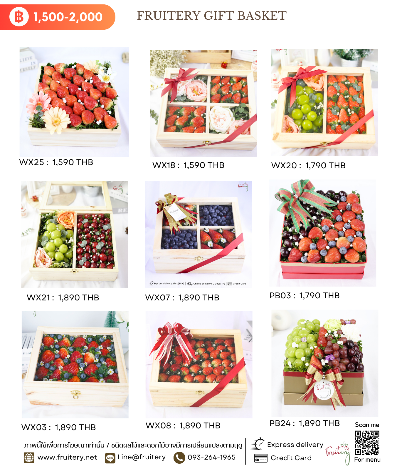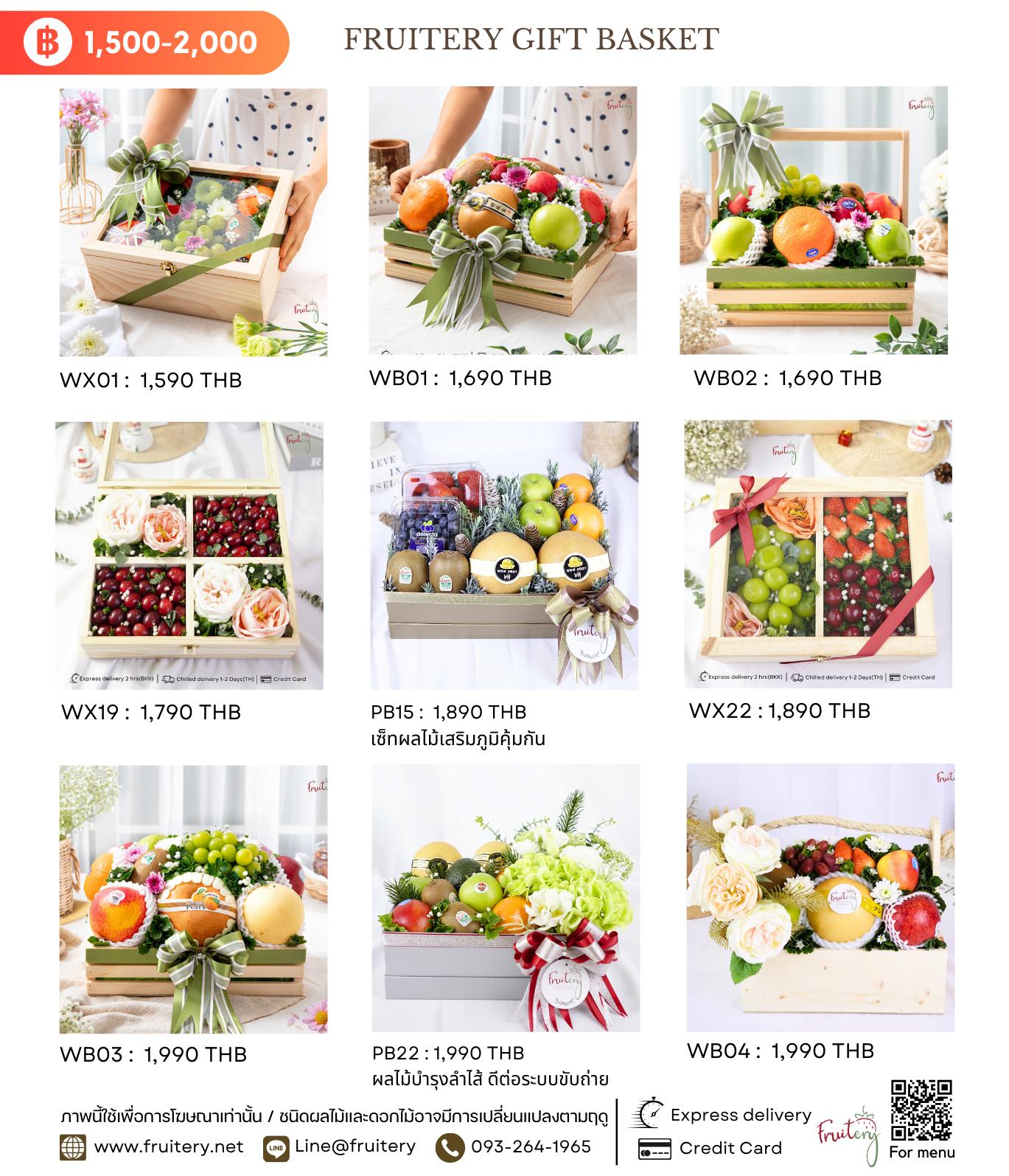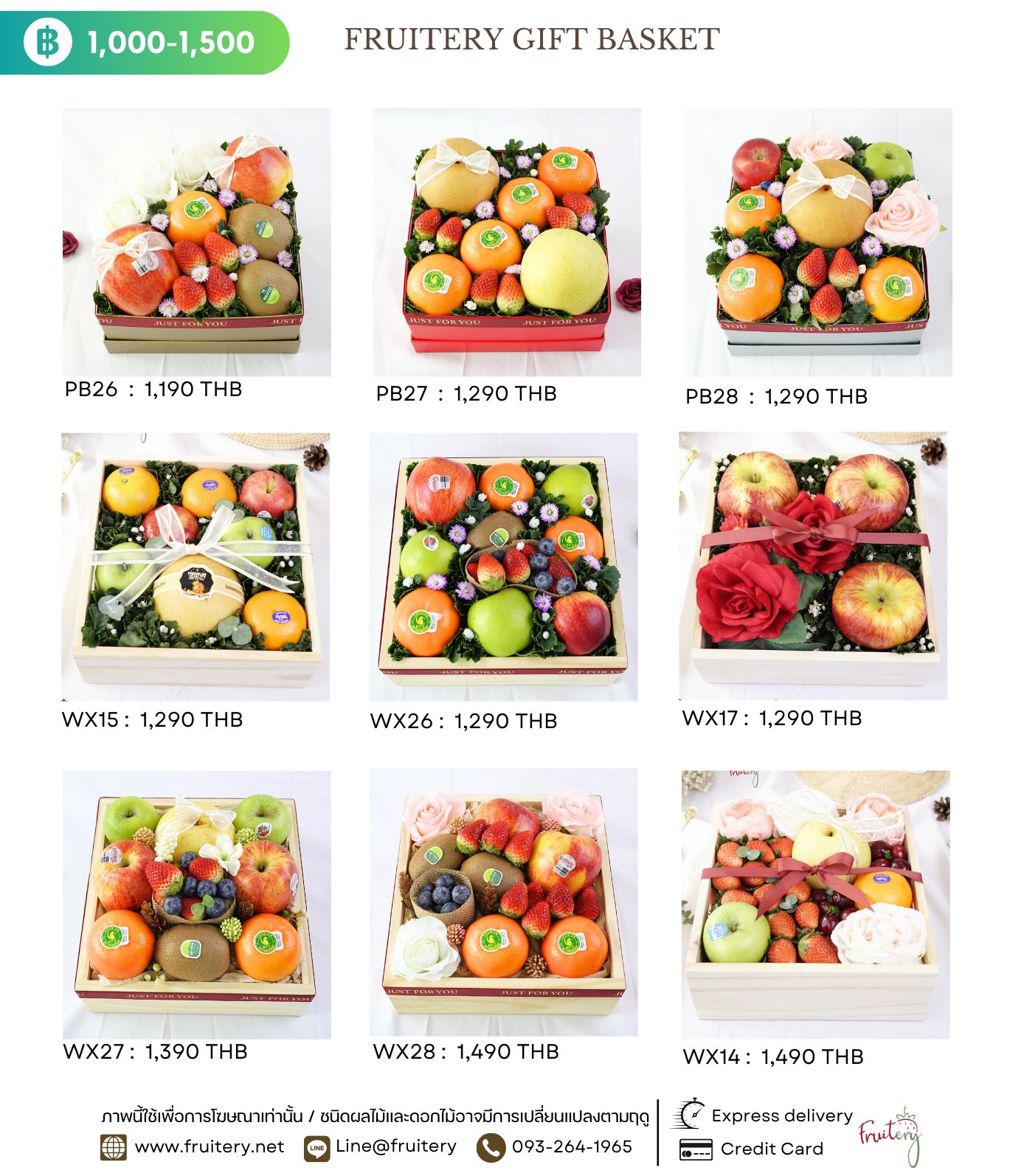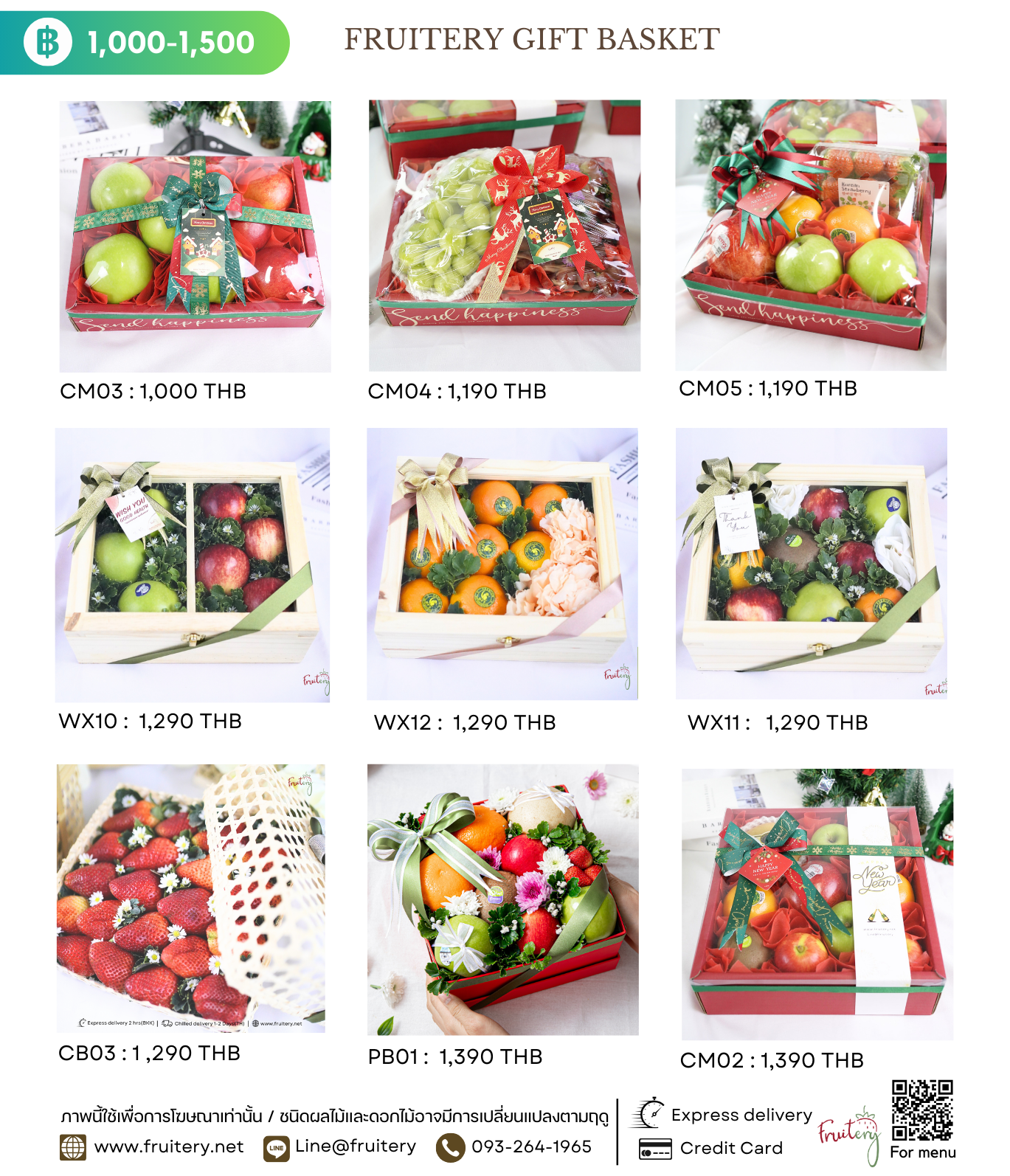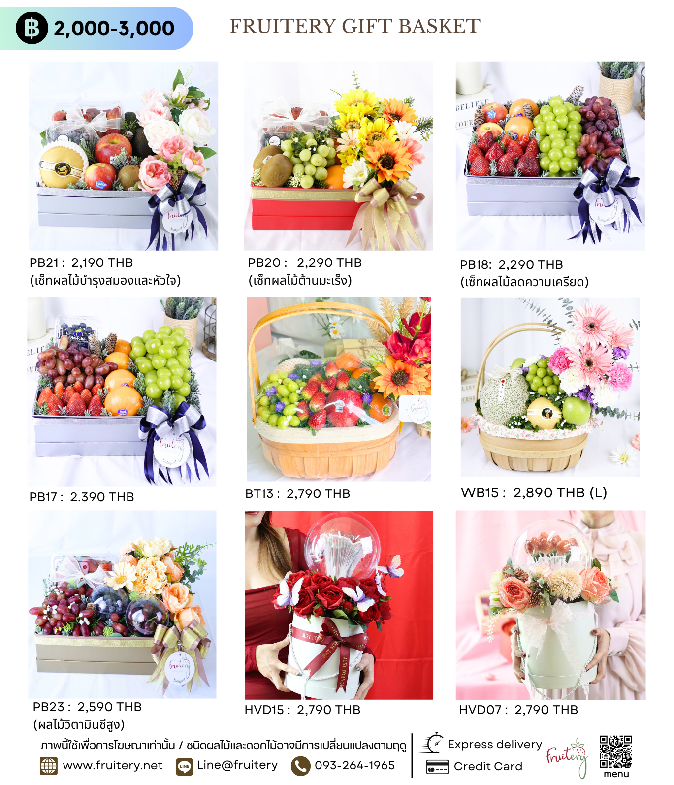 Triple Fruit Gift Box (Size S) Floral & Botanical Theme กล่องของขวัญผลไม้นอกรวม ตกแต่งด้วยดอกไม้สด (กล่องสีแดง/เงิน/ทอง)