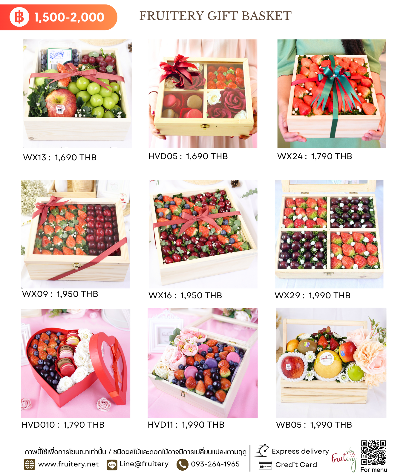 Fruit & Flower Gift Box (Size S) Floral & Botanical Theme กล่องของขวัญผลไม้นอกรวม ตกแต่งด้วยดอกไม้สด (กล่องสีแดง/เงิน/ทอง)